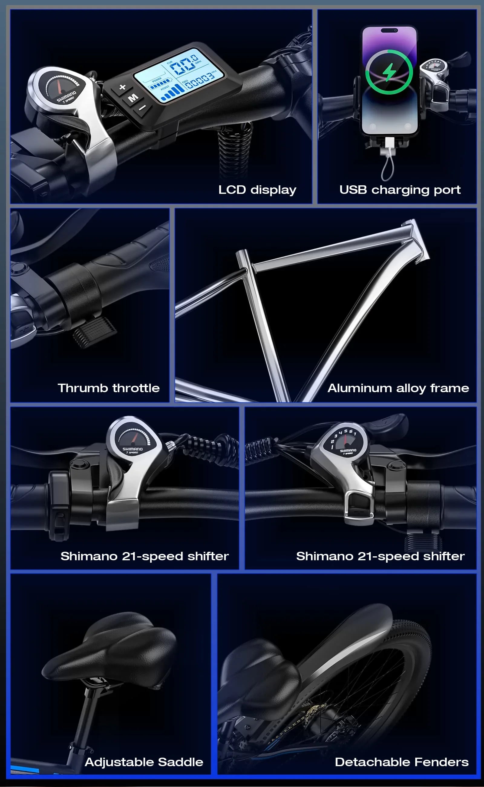 Elektrofahrrad E-BYCCO E8 mit 500W+ Motor, 48V Lithiumbatterie und 29" Rädern. Höchstgeschwindigkeit 30-50 km/h, Reichweite 31-60 km – perfekt für Pendeln und Freizeitfahrten.